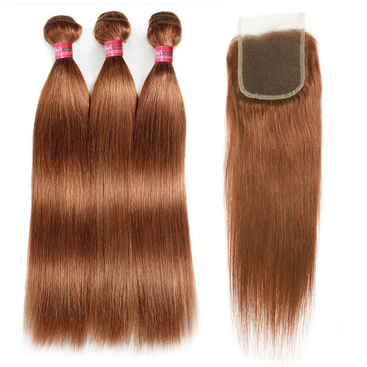 Bone Straight Human Hair With Lace Closure 3 Bundles With Closure 4# Color Hair Extensions