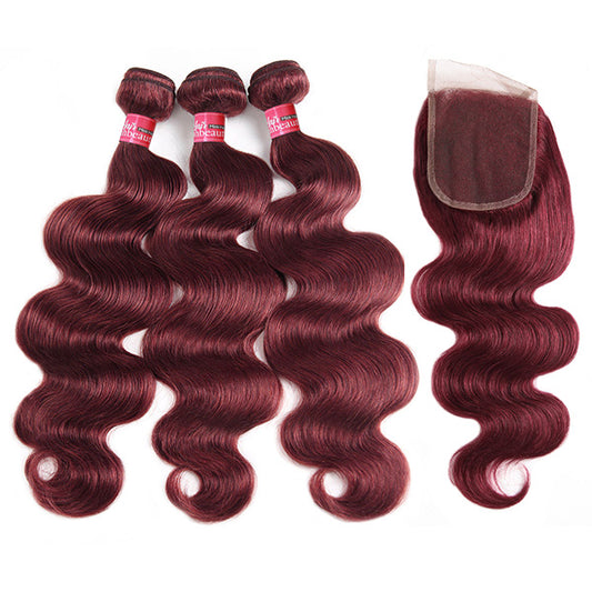 Burgundy Color Body Wave Human Hair 3 Bundles With 4x4 Lace Closure Brazilian Hair
