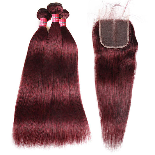 99J Burgundy Hair 3 Hair Bundles With Closure Bone Straight Human Hair With Baby Hair For Black Women