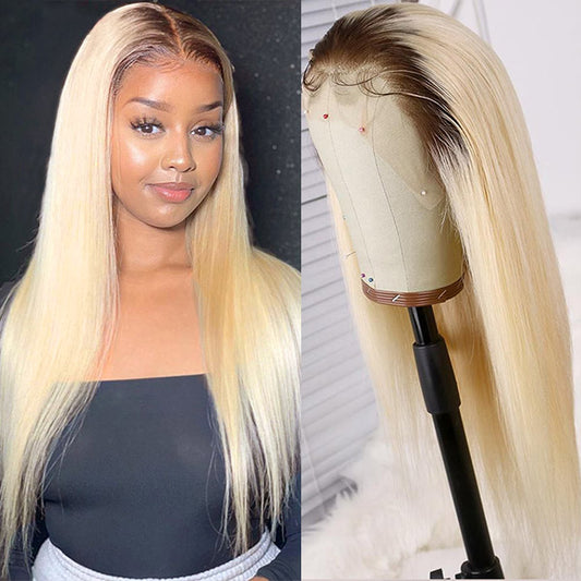 Glueless Wig 13x4 Ombre Straight Lace Front Wig T1B/613 Full Lace Frontal Wigs Pre Plucked Colored Human Hair Wigs