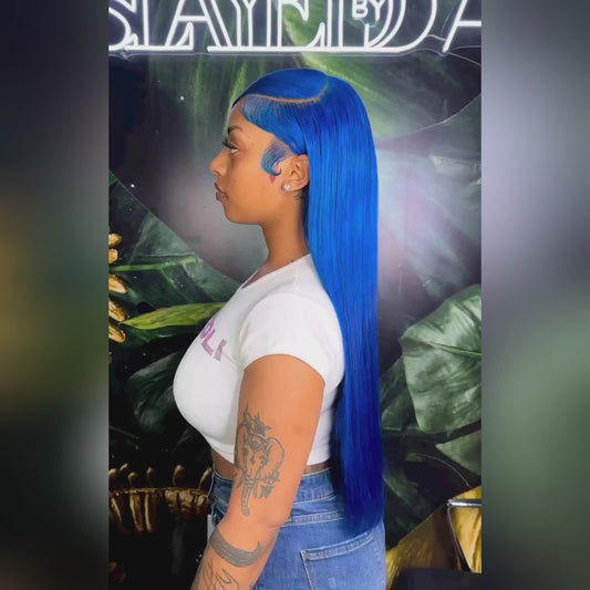 Blue Precolored Human Hair Wigs Straight Hair Wig 13x4 HD Lace Front Wig Glueless Wigs for Women