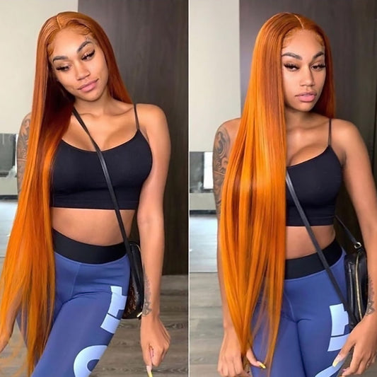 Straight Lace Front Wig Ginger Orange Color Glueless Straight Wigs Neck Length Wig
