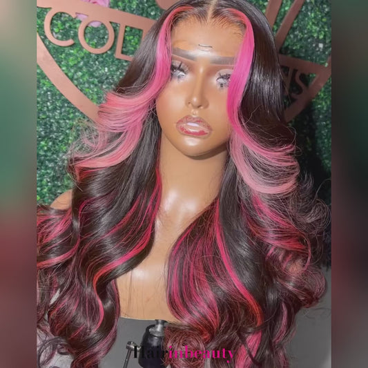 Glueless Body Wave Human Hair Wigs Highlight 1B/Pink Color 13x4 Body Wave Lace Front Wig