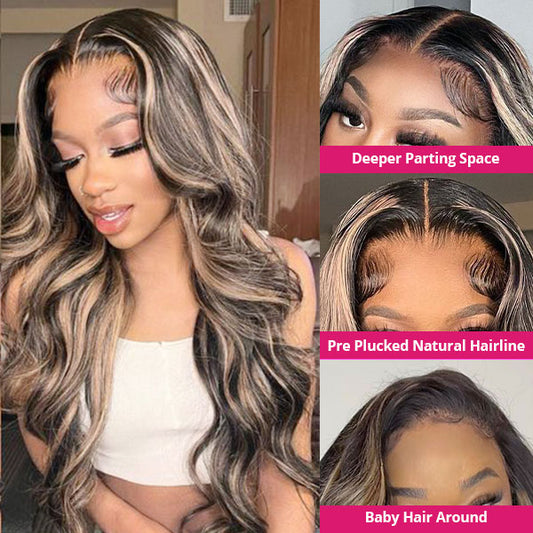 Blonde Highlight Body Wave Lace Front Human Hair Wig Hightlight 1B/27 13x4 HD Lace Frontal Wigs Glueless Wig