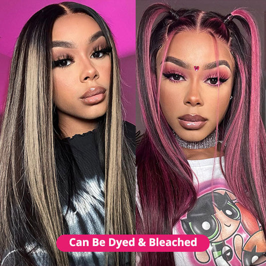 13x4 Lace Frontal Wig 1B/27 Highlight Black Blonde Straight Wigs Pre-plucked Glueless Straight Human Hair Wig