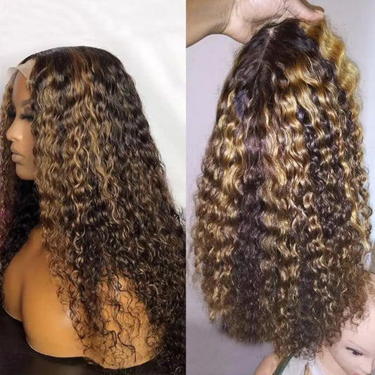 HD Blonde Highlight Lace Front Wig 13x4 Kinky Curly Wigs Human Hair Glueless Wigs