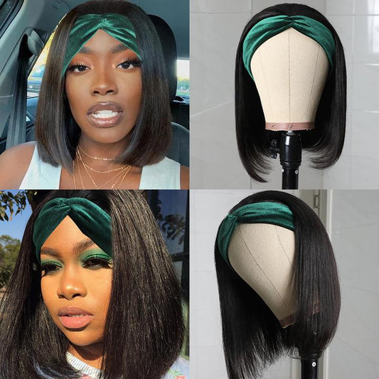 Straight Short Bob Human Hair Headband Wig Glueless Wig