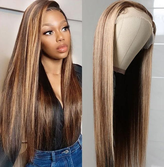 Blonde Highlight Wig Straight Human Hair Wig 5x5 HD Lace Closure Wig Glueless Wigs