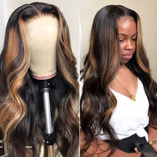 Honey Blonde Highlights Wigs 5x5 Lace Wig Body Wave Human Hair Wigs Glueless Wigs