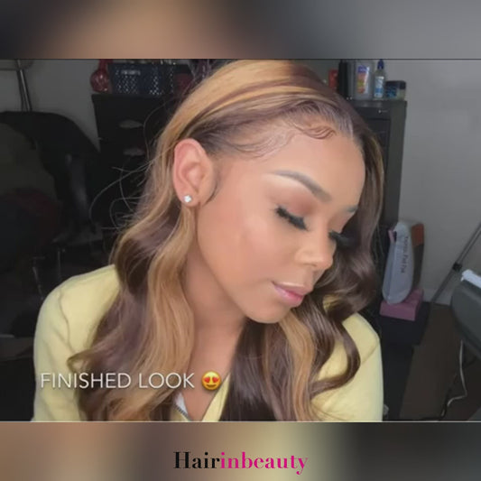 Honey Blonde Highlights Glueless Wig 13x6 Lace Front Wig Body Wave Hair Wig HD Lace Frontal Wig
