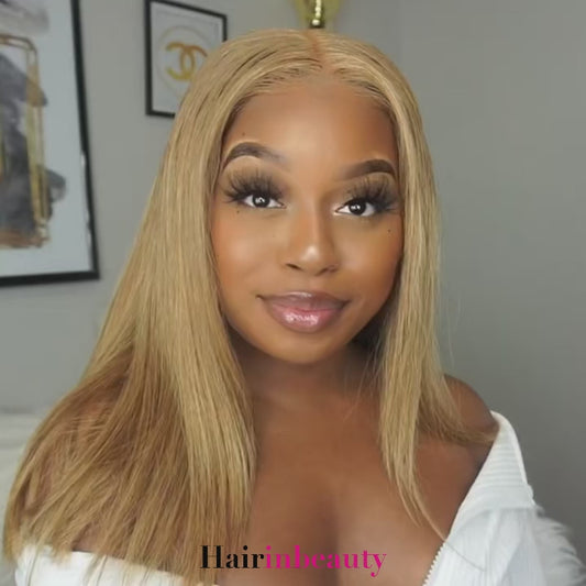 Glueless #27 Honey Blonde Short Straight Bob 13×4 Transparent Lace Wig