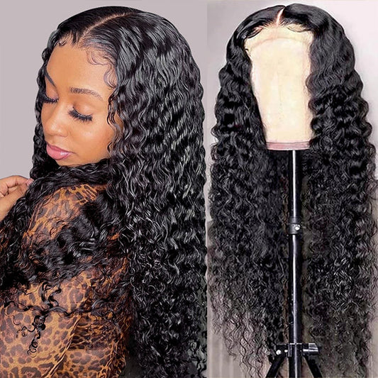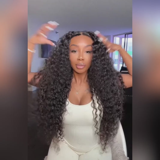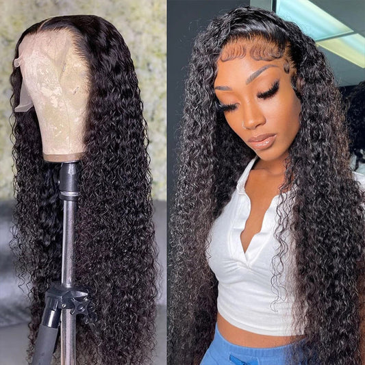 Glueless Deep Curly Lace Closure Wig 6x6 HD Lace Human Hair Wig Curly Hair with Pre-plucked