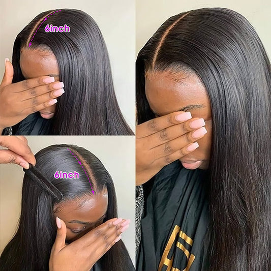 Glueless 6x6 Lace Closure Wig Straight Human Hair Wig Pre-plucked Straight Lace Front Wig