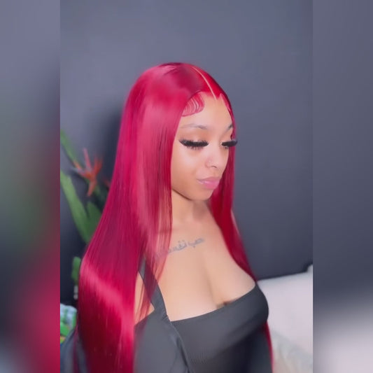 Red Colored 13x4 Lace Frontal Wig 32 Inch Straight Human Hair Wig Undetectable Invisible Ready To Wear Lace Wigs