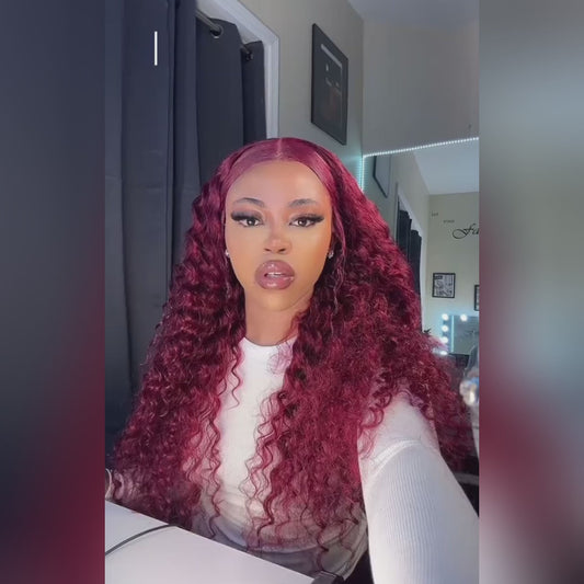 99J Human Hair Wigs Glueless Deep Wave Lace Front Wigs Burgundy 13x4 HD Lace Frontal Wig 250 Density Wig