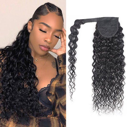 Water Wave Ponytail Human Hair Wrap Arount Clip In Hair Extensions Natural Wave Ponytail