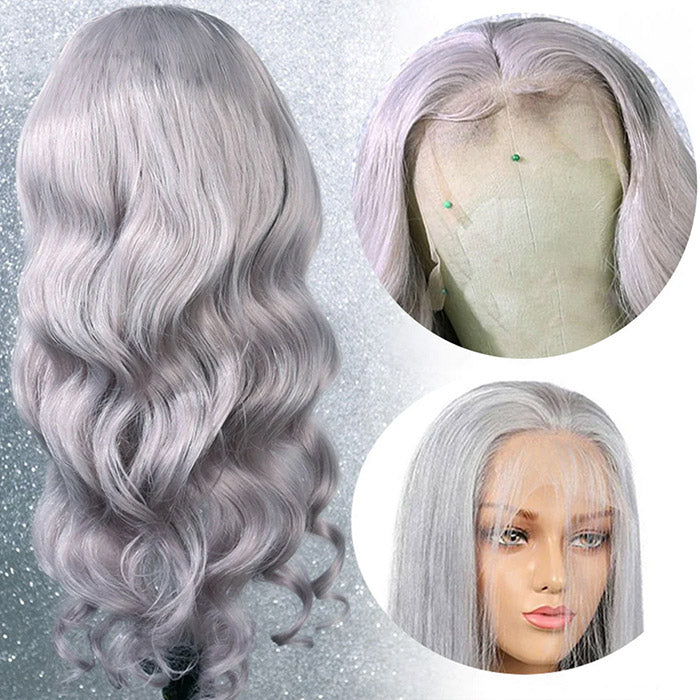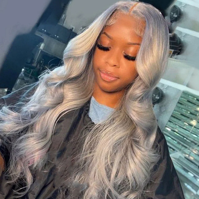 13x4 Body Wave Wig Silver Color 100% Transparent HD Lace Human Hair Wigs Glueless Body Wave Wigs