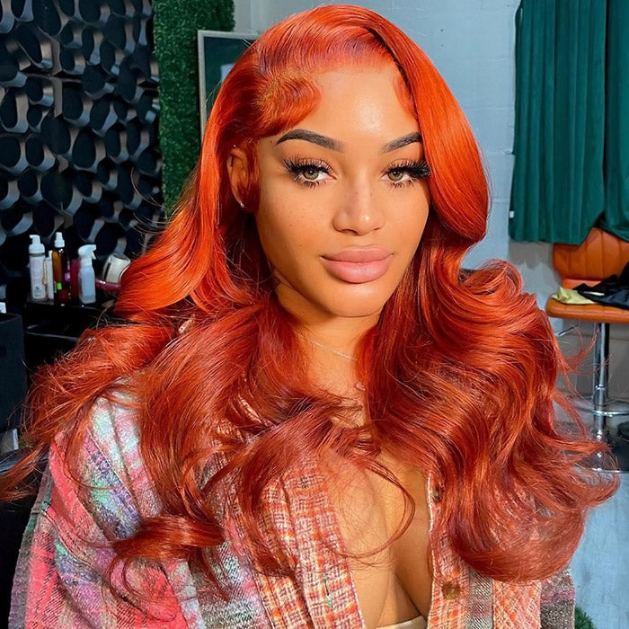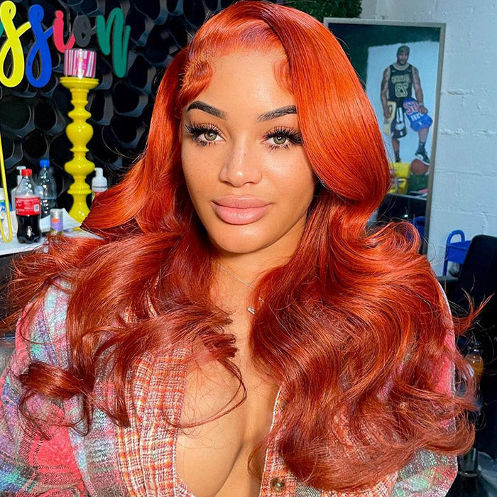 Item: Pre-plucked Short Body Wave Lace Front Wig Gluless Body Wave Wig 14 Inch Short Bob Wigs Orange Ginger Color