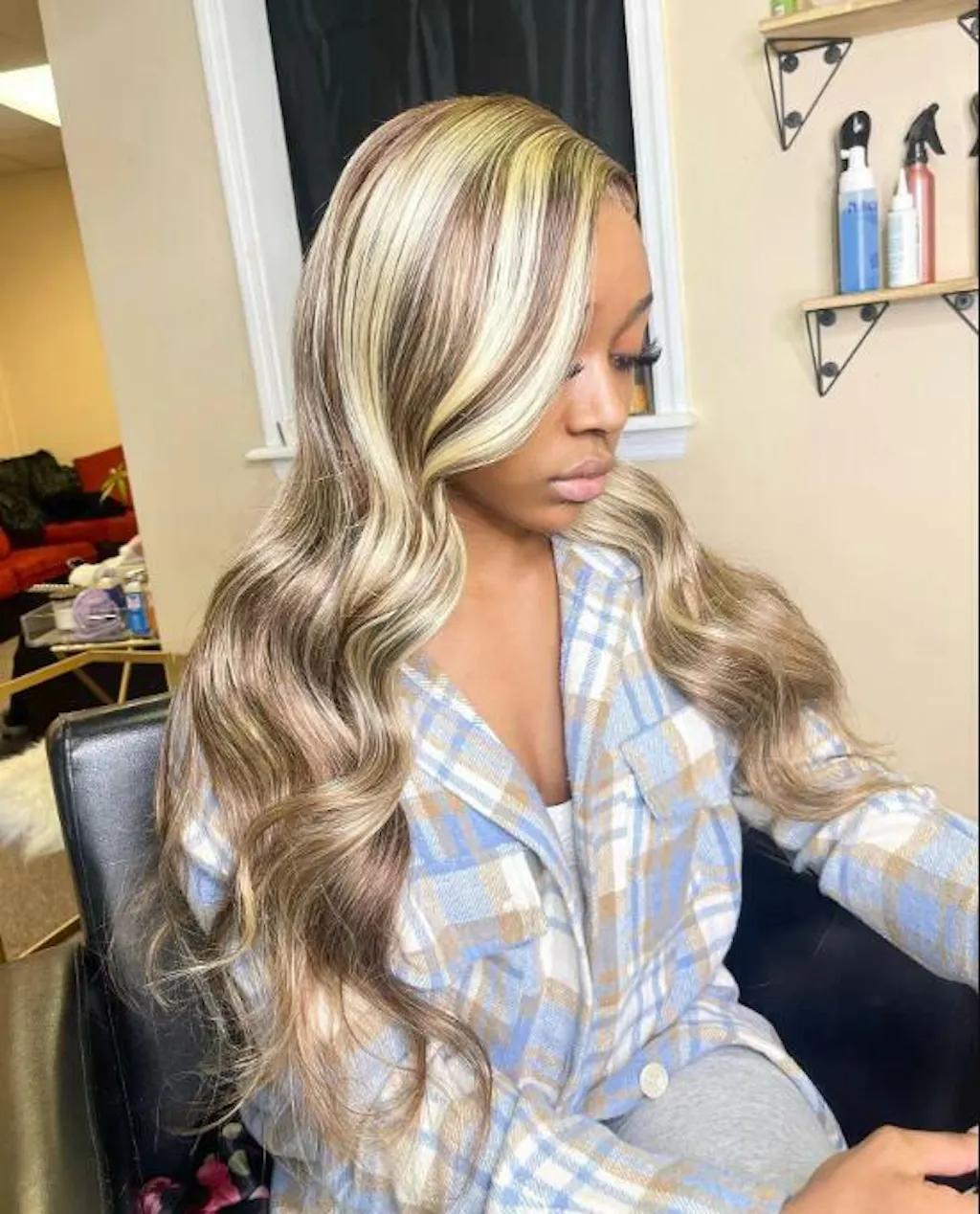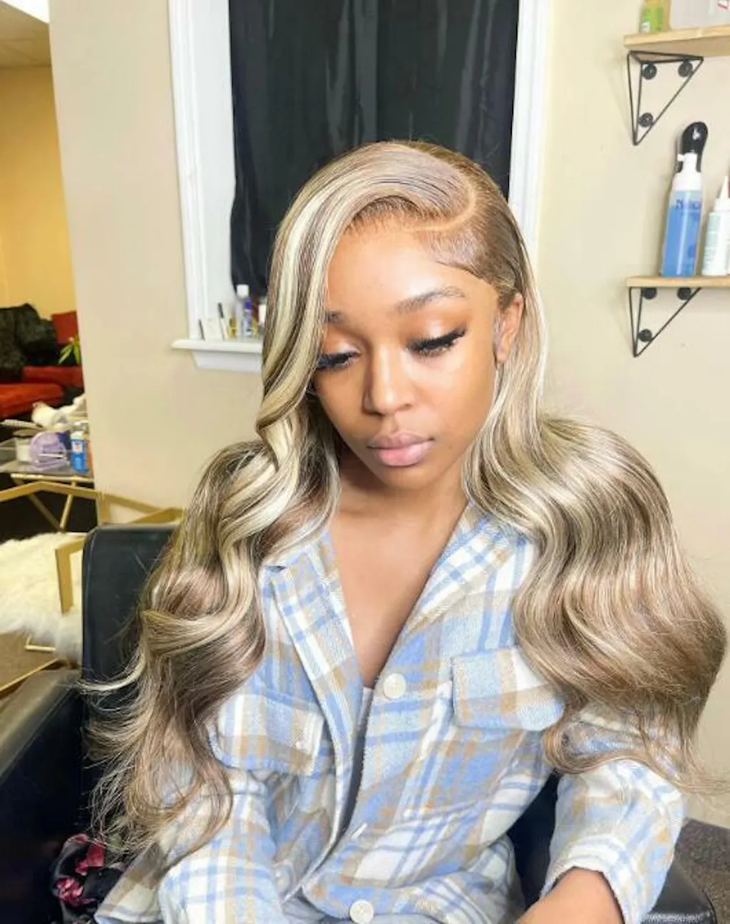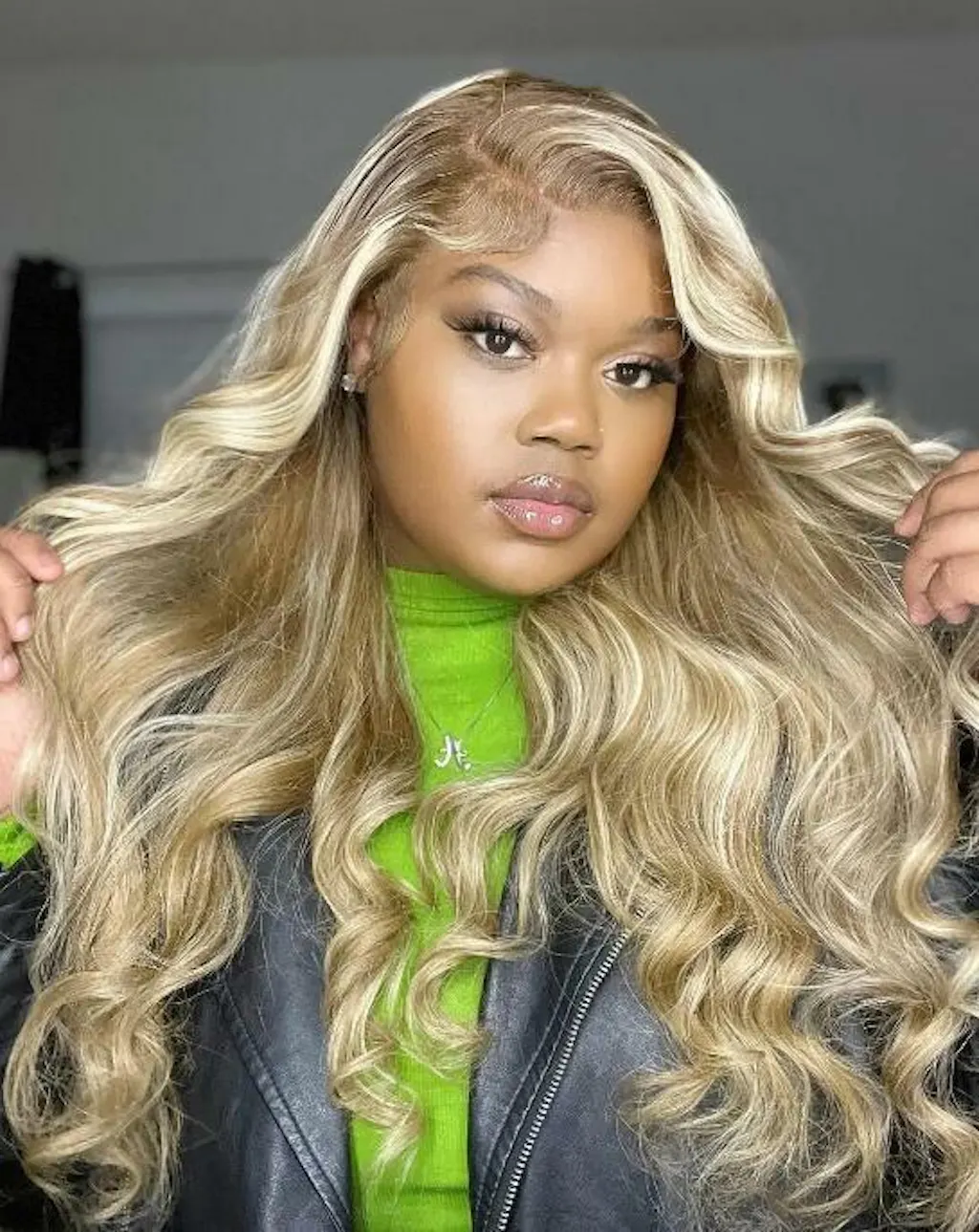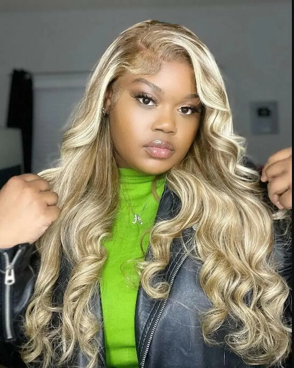 Hair Material: Human Hair Wigs, Blonde Highlight Body Wave Lace Front Wig, Can Be Dyed And Bleached Easily