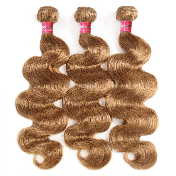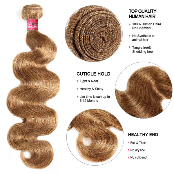 Item: Brazilian Hair Bundles With Closure 27# Colored Body Wave Human Hair 3 Bundles With HD Closure With Baby Hair