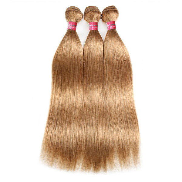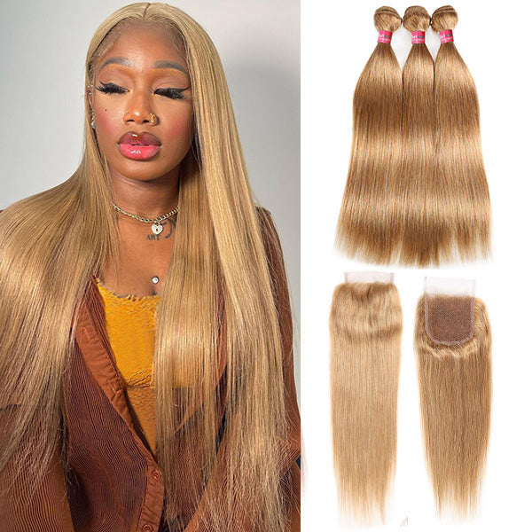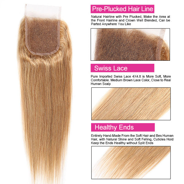 Item: 27# Honey Blonde Hair Bundles With Closure Brazilian Straight Human Hair 3 Bundles With HD Lace Closure