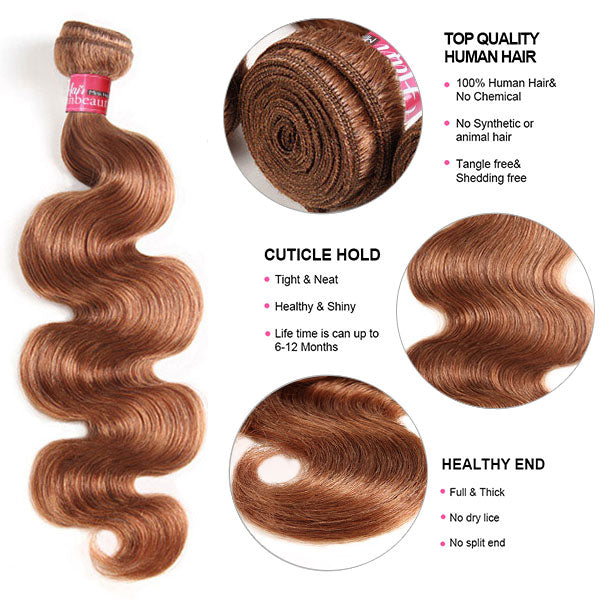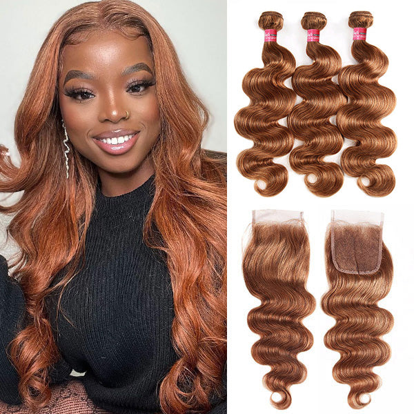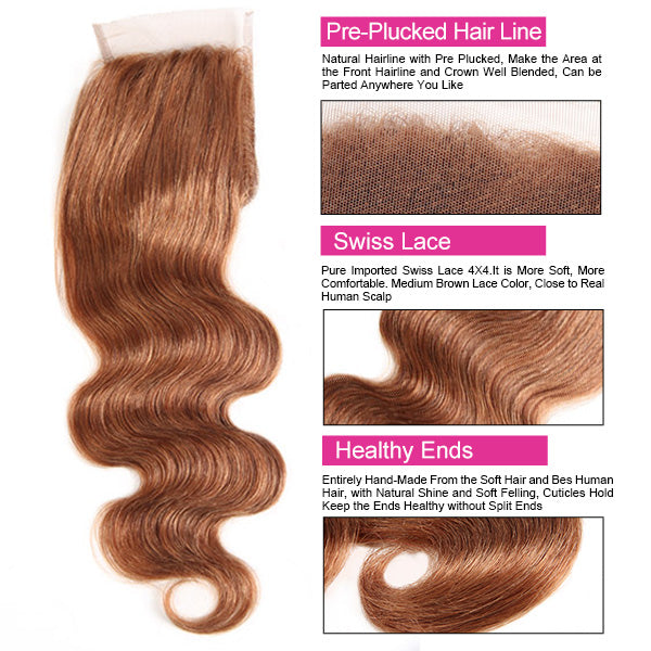 Item: Brazilian Hair 4# Body Wave 3 Bundles With Lace Closure Colored Human Hair
