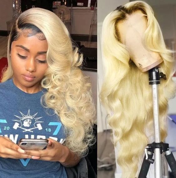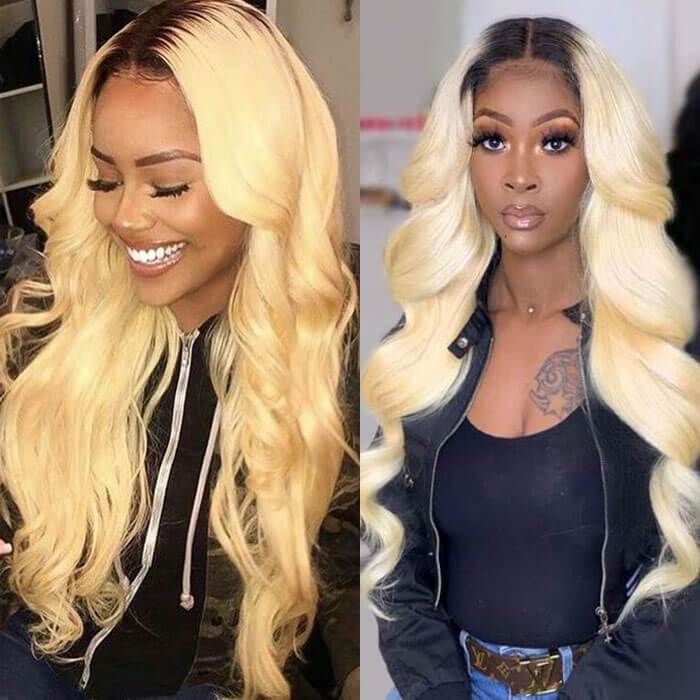 Item: Ombre Honey Blonde Body Wave Lace Front Wig T1B 613 Blonde Wig 150% Density Lace Frontal Human Hair Wigs Mink Hair Blonde Wig Two Tone Color Blonde Wig Virgin Hair With Natural Hairline Baby Hair Lace Front Wigs In Stock