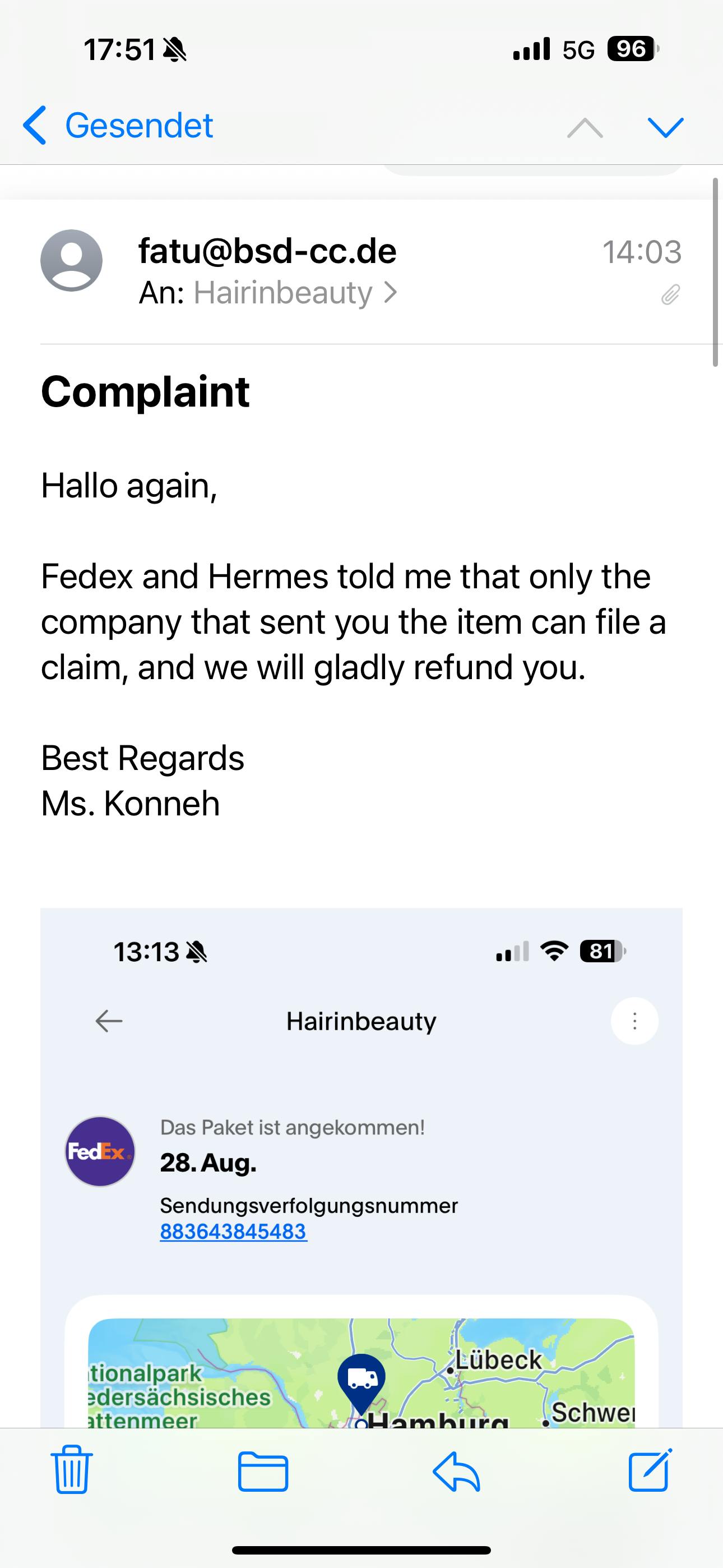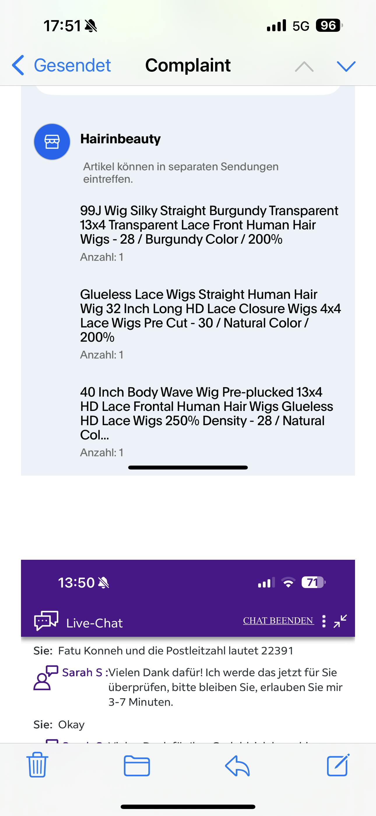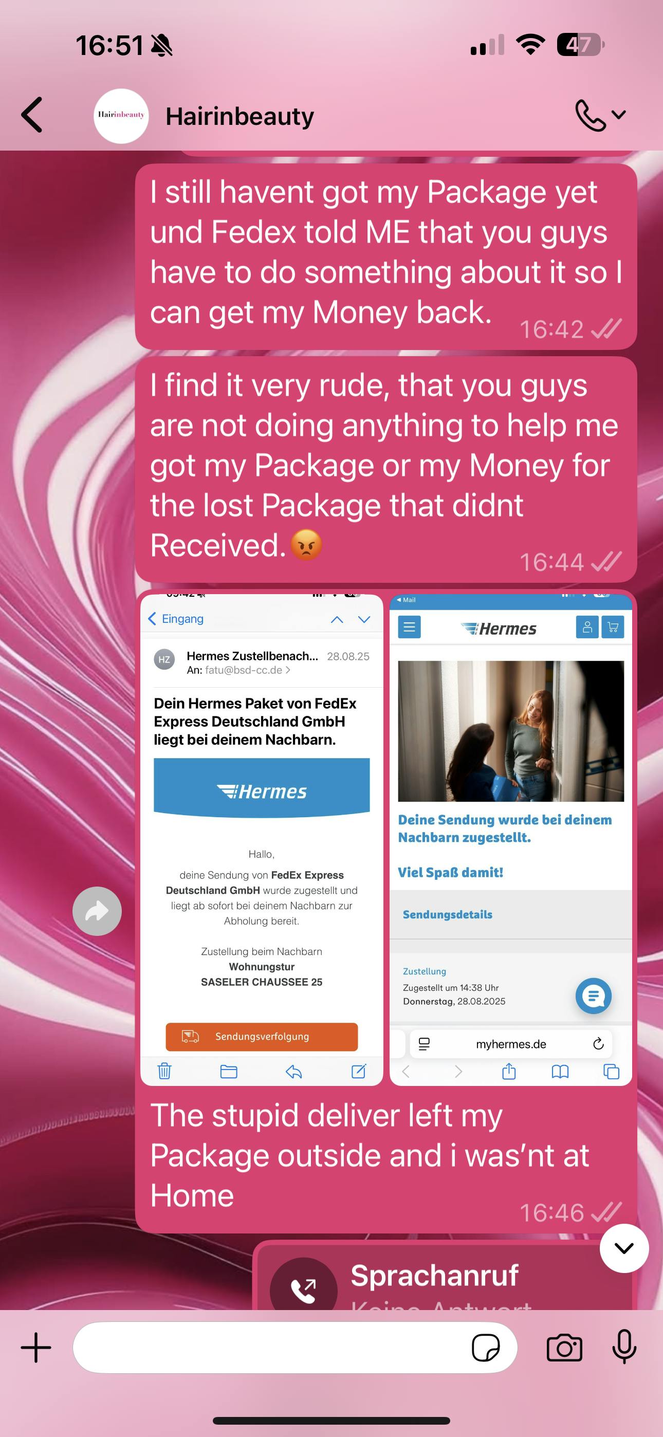 I didnt got my Package and Hairinbeauty are not answering my E-Mails or my Messages about my complaint… I just want my Money for the wigs I Order and didnt Received. 😡😡😡😡