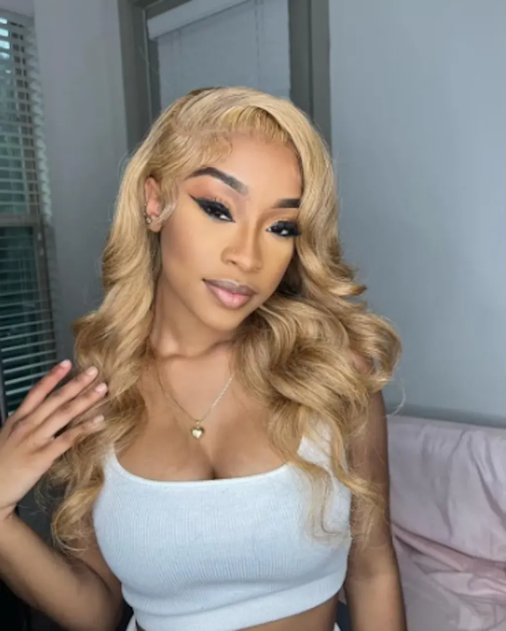 Hair Material: Human Hair Wigs, Honey Blonde #27 Body Wave Lace Front Wig, Can Be Curled And Straightened Easily