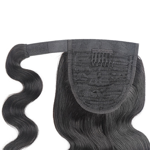 Body Wave Long Wavy Wrap Around Clip In Ponytail Hair Extension Brazilian Remy Human Hair Natural Color Heat Resistant Pony Tail