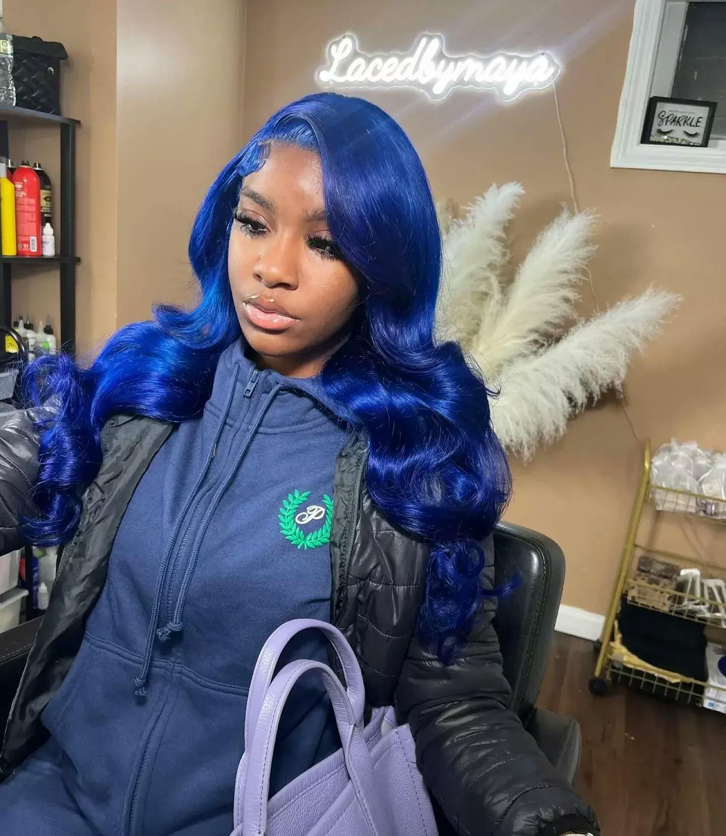 Item: Blue Colored Body Wave Glueless Wig 13x4 HD Lace Front Wigs Pre Plucked Lace Front Wig 180% Density