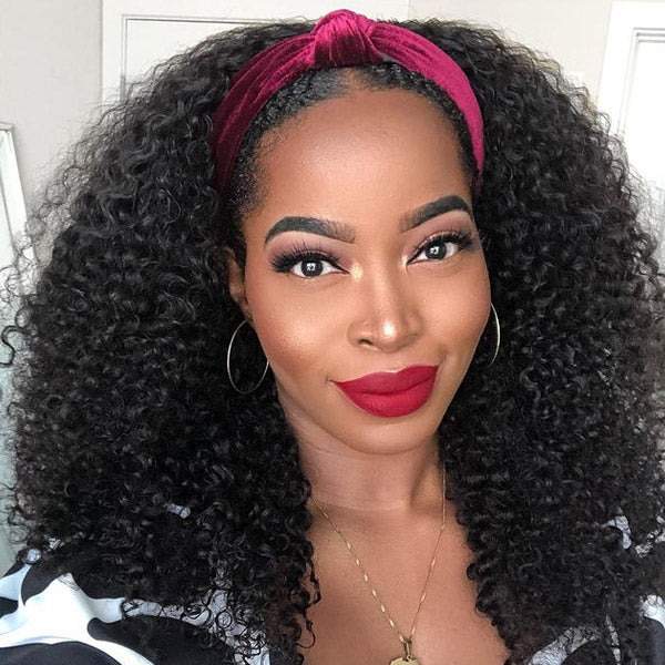 Glueless Curly Hair Headband Wigs Kinky Curly Human Hair Half Wigs with Headbands