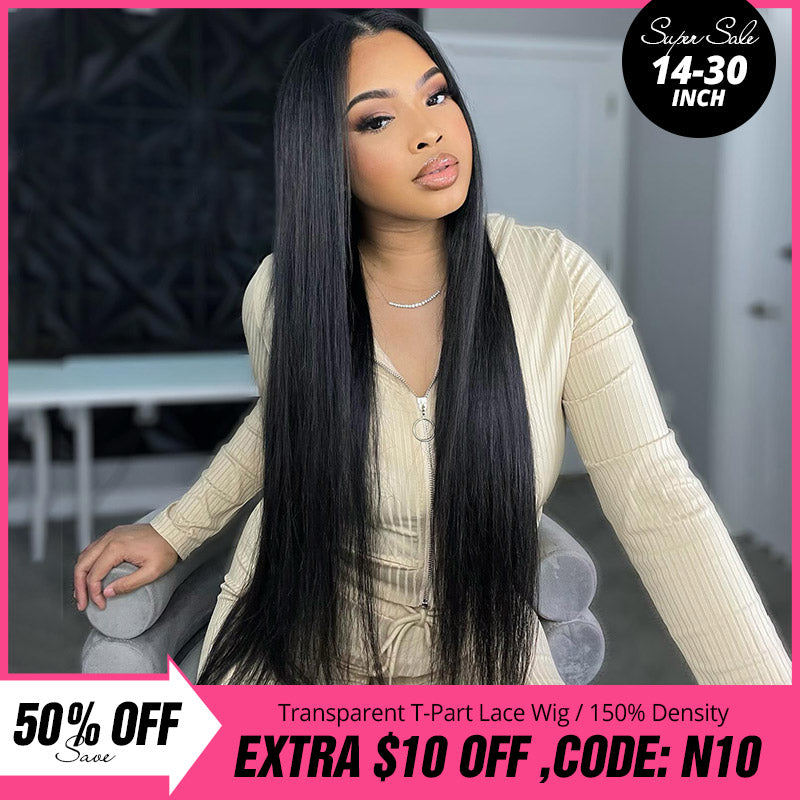 [ Anniversary's Deal ] 14"-30" Save 50% OFF Transparent 13*4*1 Lace Part Wig Human Hair Wig