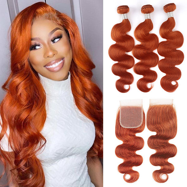 Ginger Body Wave Hair Bundles Human Hair Sew In 3 Bundles with 4x4 Lace Closure