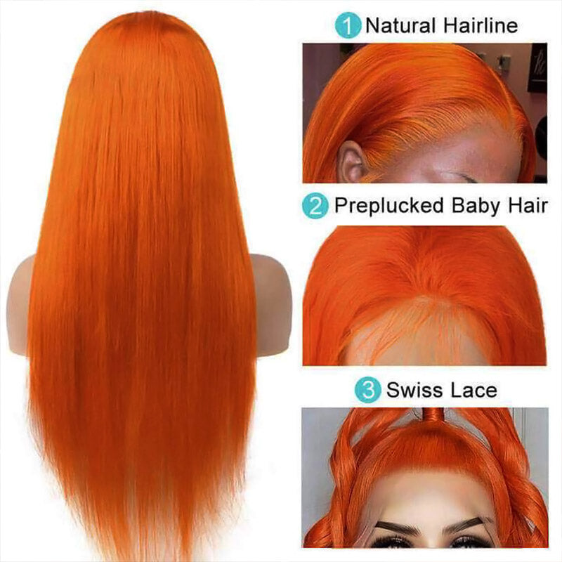 Item: Ginger Lace Front Wig Straight Lace Front Wig Human Hair Wigs For Women Straight Hair Ginger Orange Frontal Wig Transparent Lace Wigs