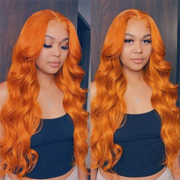 Item: Ginger Hair Colored Human Hair Wigs HD Body Wave Lace Wigs With Middle Line Wigs Straight Body Wave Hair 13*4 T Lace Part Virgin Human Hair Wig