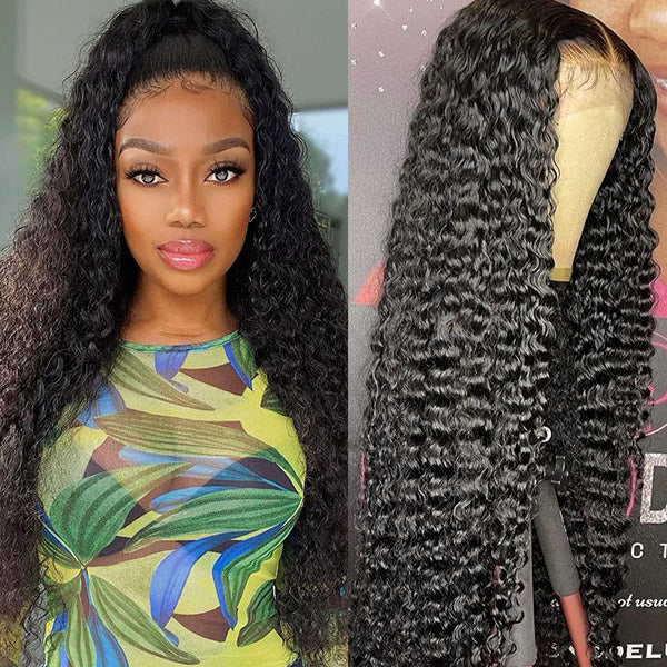 Glueless Deep Curly Lace Closure Wig 6x6 HD Lace Human Hair Wig Curly Hair with Pre-plucked