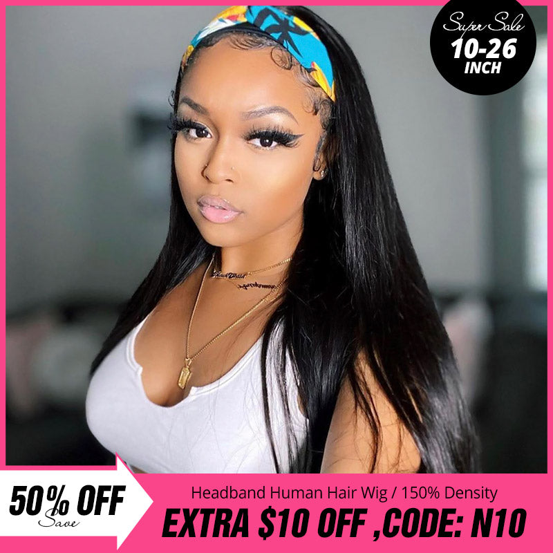 Item: 🔥(Headband Wig FLASH SALE! ) 10"-26" Save 50% OFF Headband Wig Glueless Natural Black Non Lace Human Hair Wig
