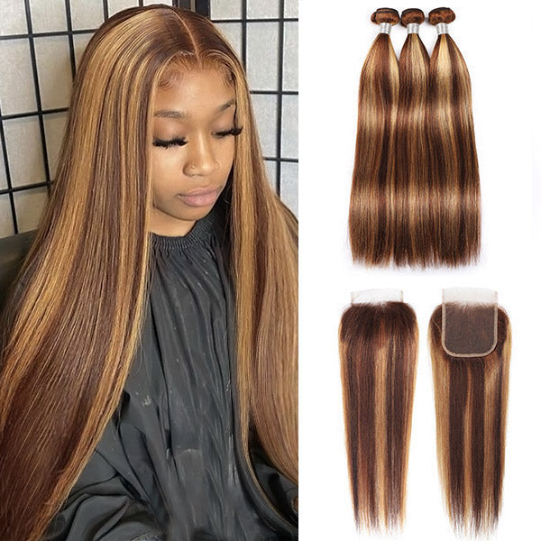 Highlight Straight Hair 3 Bundles With Closure Virgin Human Hair Bundles Pack