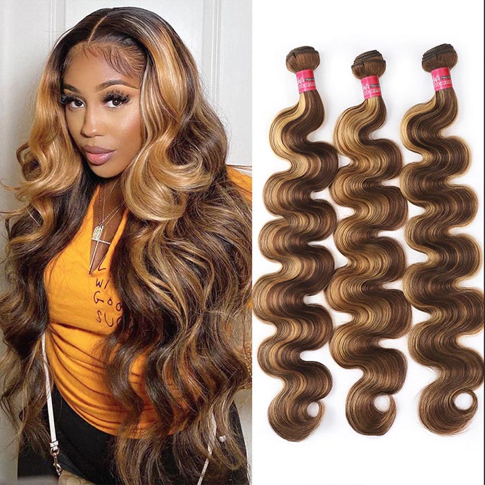Honey Blonde Highlight Ombre Color Body Wave 3 Bundles Human Hair Weave