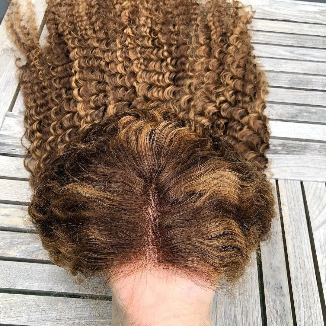 Item: Highlight Honey Brown Color P4/27 Kinky Curly Lace Closure Wig 4x4 HD Lace Front Wig 250 Density 32 Inch