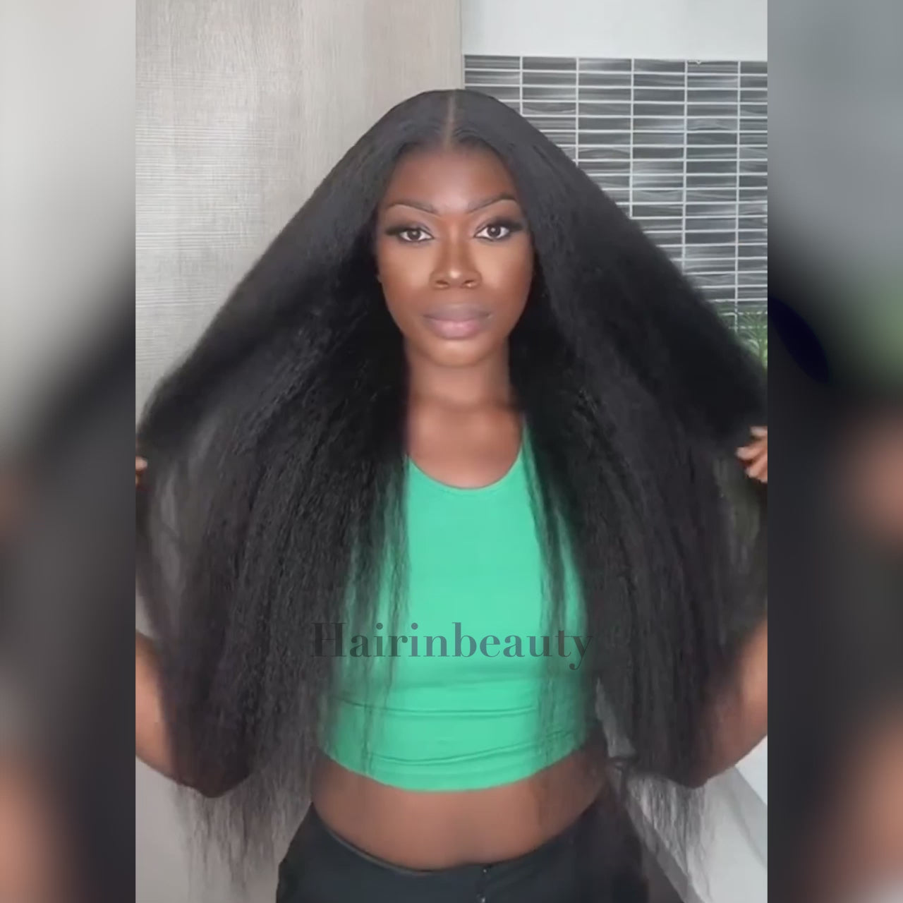 Kinky Straight Ready To Wear Glueless Wigs Pre Cut HD Lace Front Wig Beginner Friendly Pre-plucked Wigs