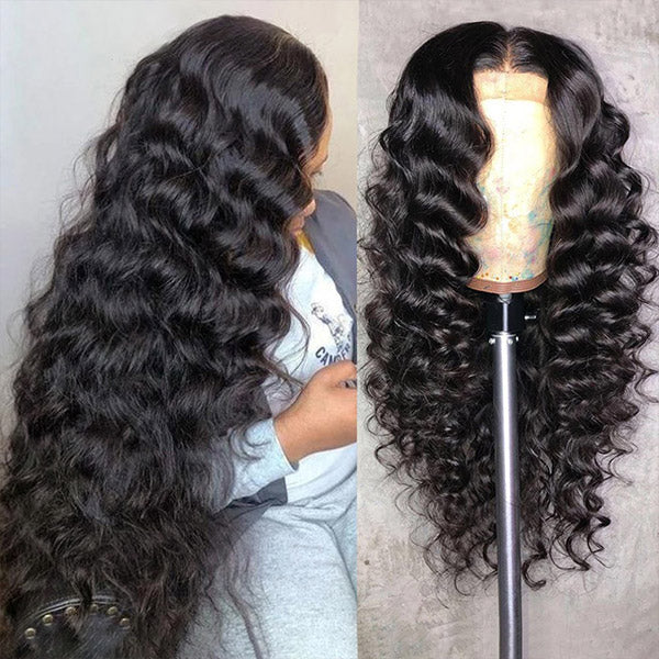 Loose Deep Wig Pre-Plucked 6x6 HD Lace Closure Glueless Wig Loose Deep Hair Bundles With Closure