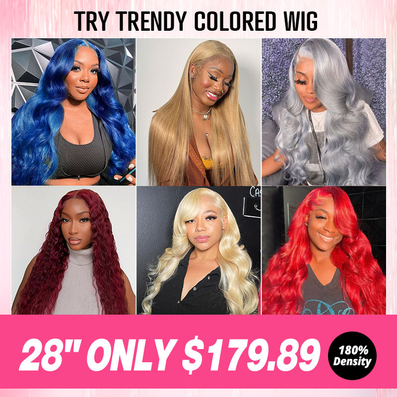 [28"= $179.89] Trendy Colored Pre Cut & Pre Plucked Ready To Wear 13*4 Lace Front Human Hair Wig Deal