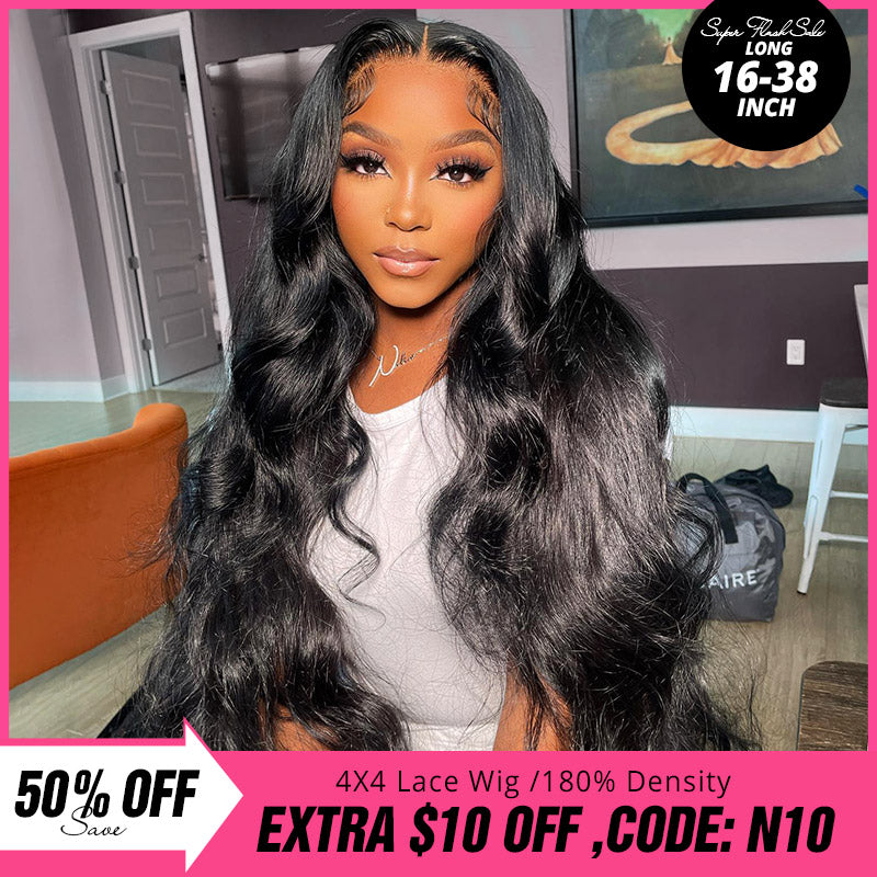 Item: [4x4 Wig Flash Sale! ] 180% Density 16"-38" Save 50% OFF Glueless 4x4 Lace Closure Human Hair Wig With Pre-Plucked