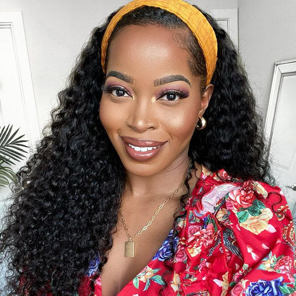 Water Wave Human Hair Headband Glueless Wigs No Lace Wigs Half Wigs with Headbands